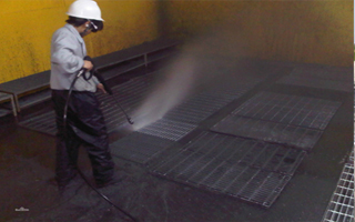 高壓水射流清洗是利用經設備增壓系統加壓的水由噴頭射出形成,靠高速水流切割擊碎管道內的結垢?物,并隨高壓水流出排...